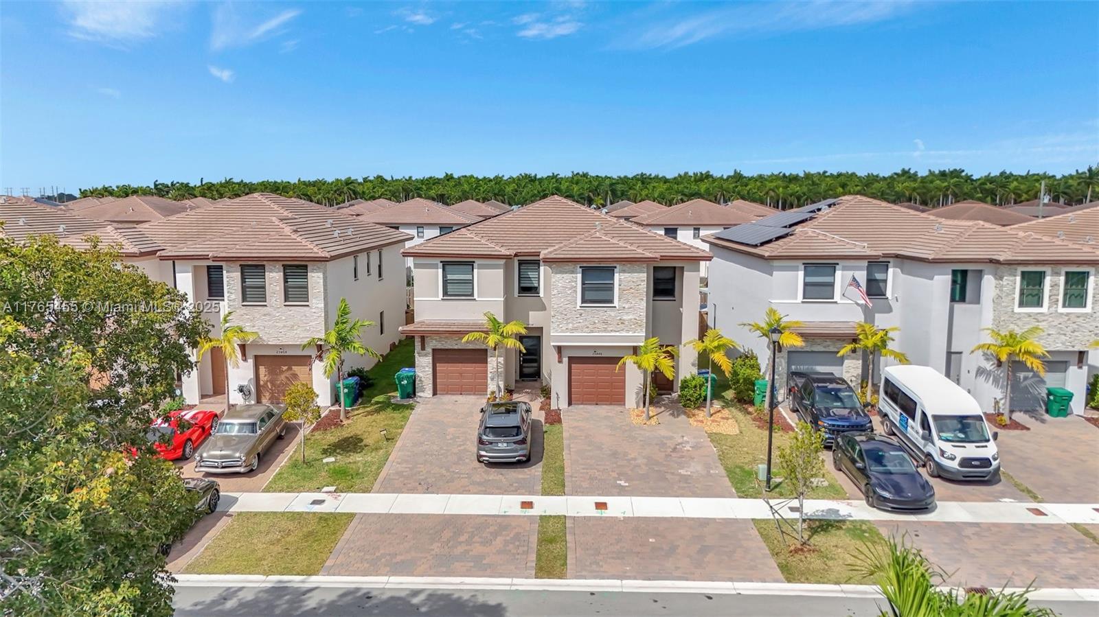 Step into luxury with this stunning twin home in the sought-after Campo Bello community! This 3 BR, 2.5 BA features beautifully accented walls, luxurious vinyl flooring throughout, & a sleek kitchen w/quartz countertops, a waterfall island, & plenty of storage. The open layout is filled w/natural light from well-placed windows. The custom-built TV wall w/electric fireplace adds warmth & style, while the elegant staircase elevates the home's design. The primary suite offers a walk-in closet & dual vanity bath. Enjoy the oversized fenced backyard w/partially paved patio; perfect for relaxing or entertaining. HOA amenities include clubhouse, pool, spa, & fitness center. Conveniently located near the FL Turnpike, Black Point Marina, & Homestead Air Force Base. Don’t miss the 3D virtual tour!