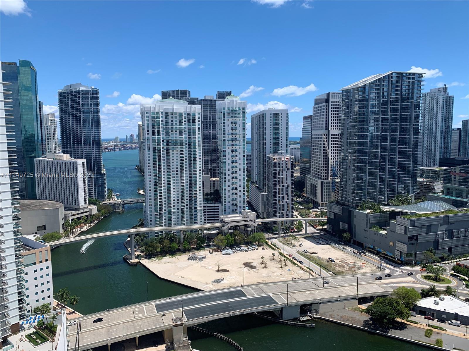 This is it! Largest 1 bedroom model with 846 interior sq ft, floor to celing glass throughout, private corner balcony, with an extra guest bath, lost of closet space, bathroom and kitchen cabinetry. Amazing direct views to the Miami River, Brickell Citi Centre, the bay and some views of Miami Beach. Impeccably kept by owner who keeps up to date service on all appliances and fixtures. Light ceramic floors throughout. Walk in closet with organizers. Parking close to elevators on low level. Show and sell this beautiful unit! Perfectly located in the heart of Brickell but away from traffic. Miles of River walks, dog park, 2 children's parks, spa, gym, business center, party rooms. On site Bistro market, dry cleaners, hair dresser, Show and sell this beauty. Please use showing assist.